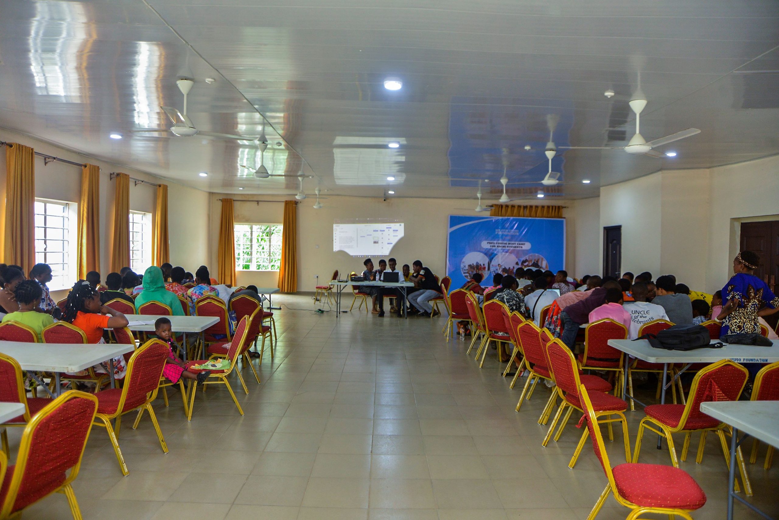 The Lady Caroline Nkemakonam Ufudo Multipurpose Hall & Event Center is an integral part of the Sir Pius Ufudo House. The hall can seat up to 400 people (open style) or 250 people (banquet table style) and is very suitable for conferences, weddings, town-hall meetings, etc. Equipped with audio and visual projection equipment, the hall is also suitable for learning events, government and community outreach programs and seminars. The Hall is supported by a smaller 40-person seating capacity conference room for smaller sized meetings and events.